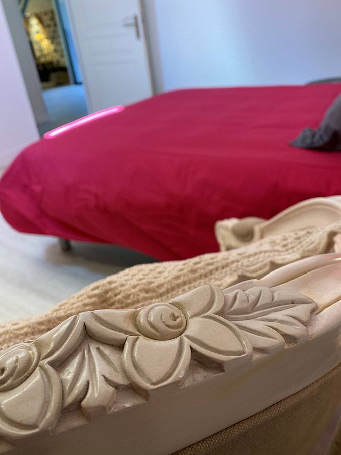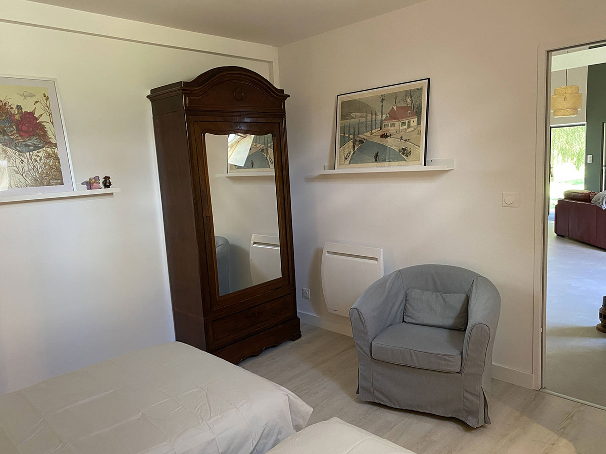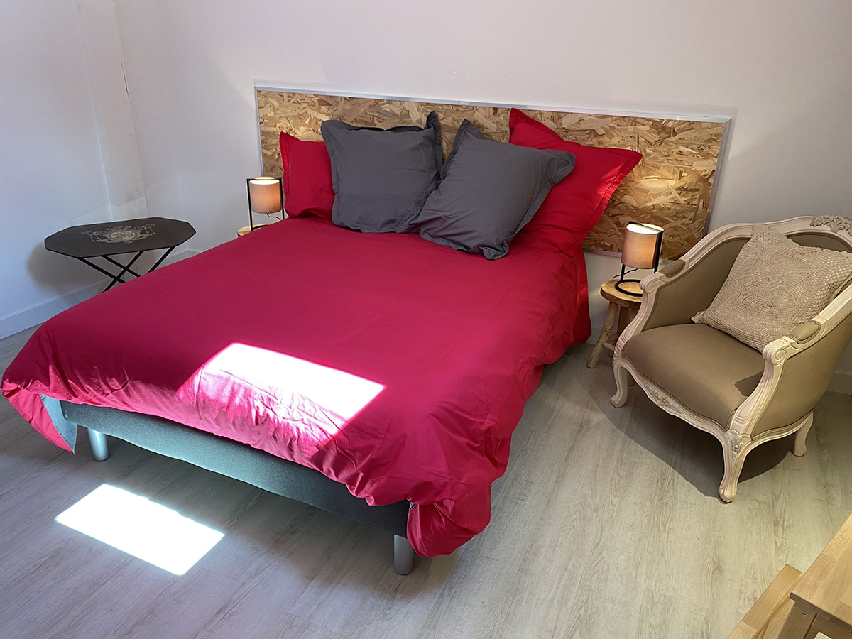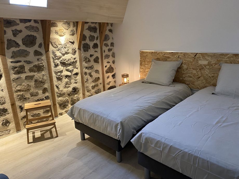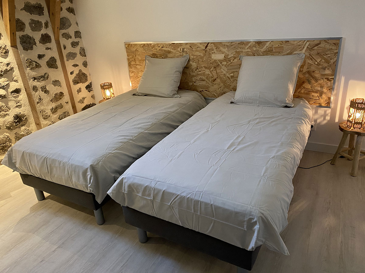 Une chambre avec un lit 2 personnes (en 140), une chambre avec deux lits simples ou un lit en 180 (2x90).